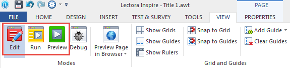 Lectora Inspire 16中有三种基本模式开发和测试您的内容 - 编辑,运行和预览。